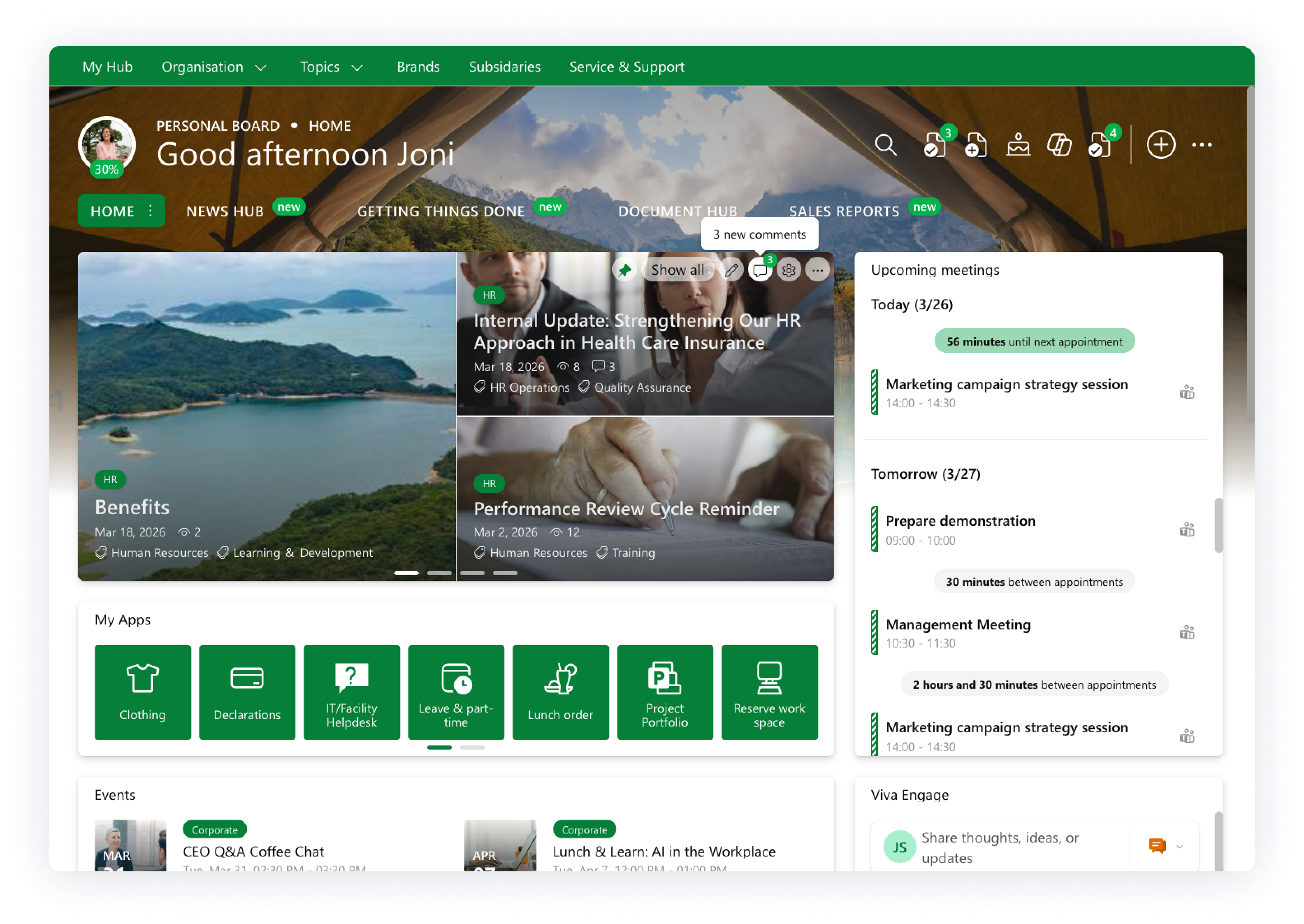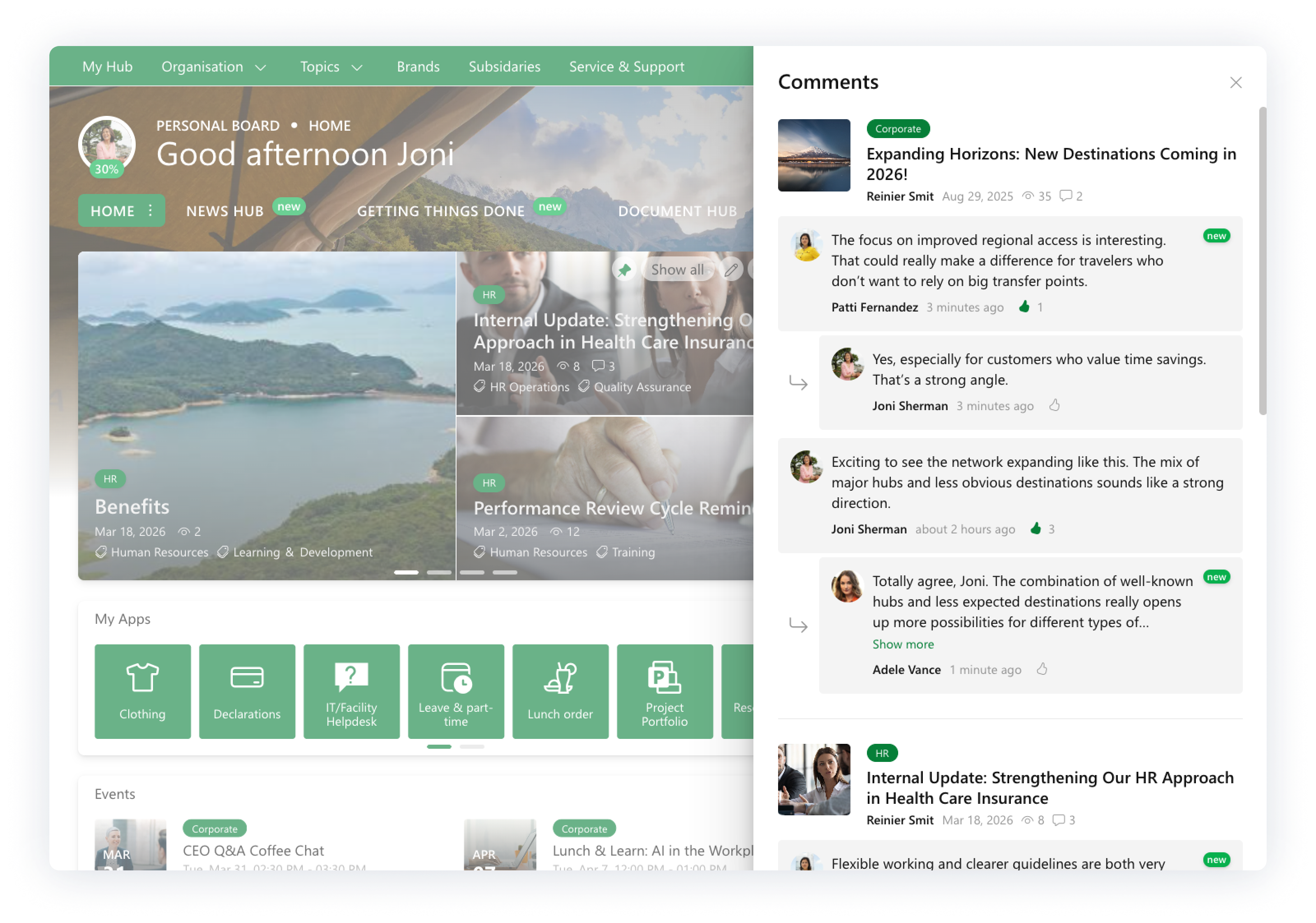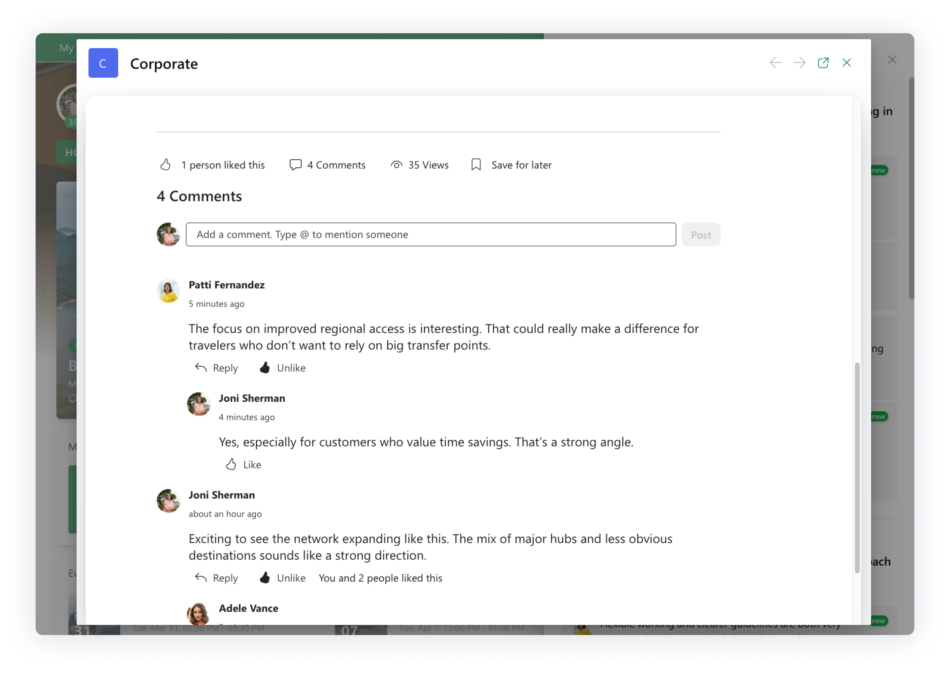 This update keeps the news feed focused, but makes sure the conversation is never far away. Less switching between pages, more awareness of what people are discussing, and a better way to stay aligned across your organization.